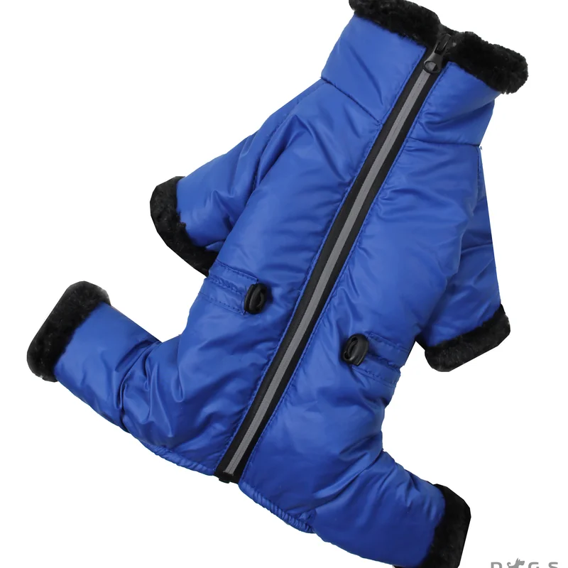 тканина водовідштовхувальна плащівка; наповнювач синтепон; підкладка фліс; обробка рукавів, штанів, горловини з плюшевого хутра; застібається змійкою на спині, змійка люкс прогумована, що не промокає; регулятор обхвату грудей на фіксаторах, модель унісекс.