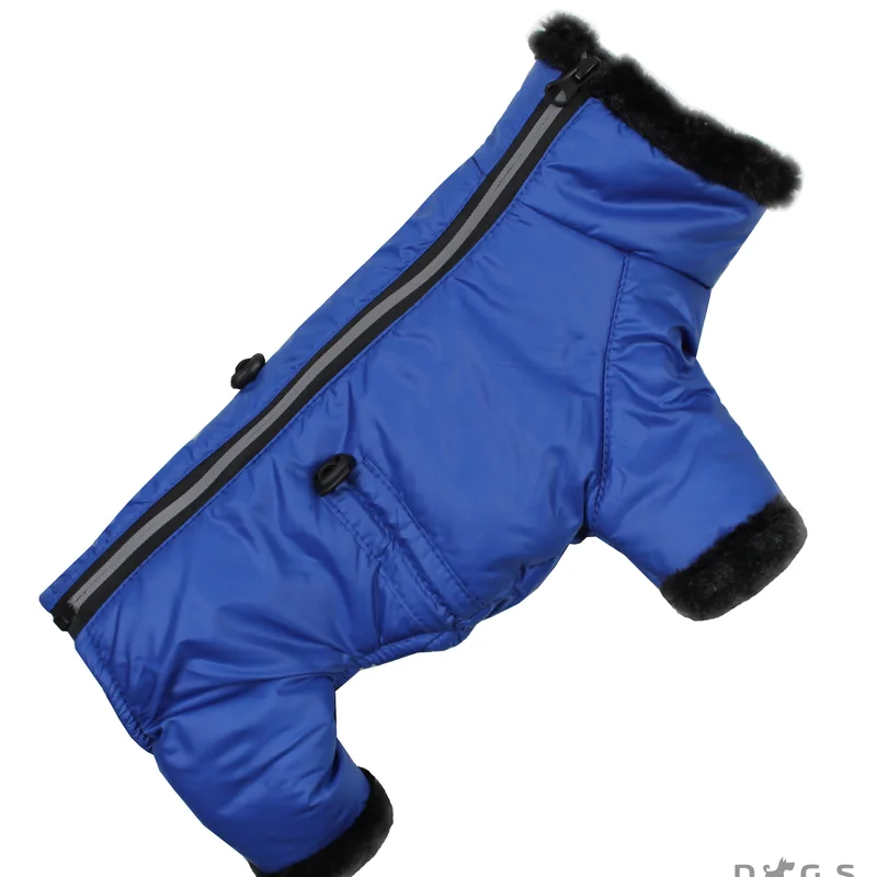 тканина водовідштовхувальна плащівка; наповнювач синтепон; підкладка фліс; обробка рукавів, штанів, горловини з плюшевого хутра; застібається змійкою на спині, змійка люкс прогумована, що не промокає; регулятор обхвату грудей на фіксаторах, модель унісекс.