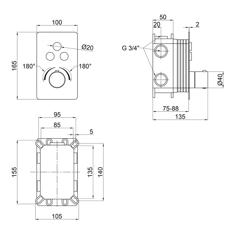 Змішувач для душу Qtap Votice термостатичний прихованого монтажу на три споживача QTVOT6443T105NKC Chrome