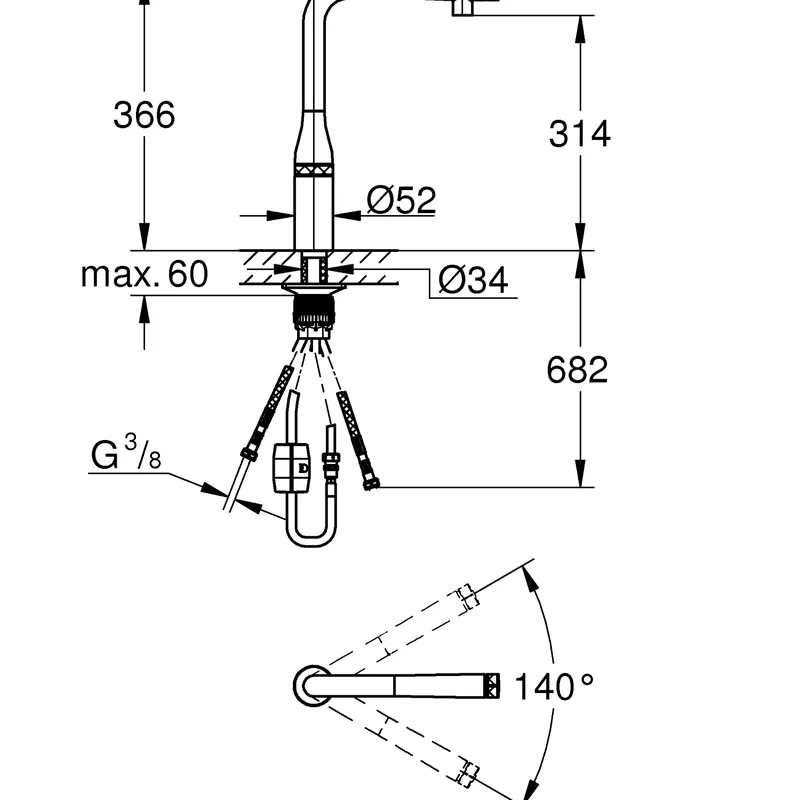 Змішувач для кухні з висувним виливом Grohe Essence SmartControl (31615DC0)