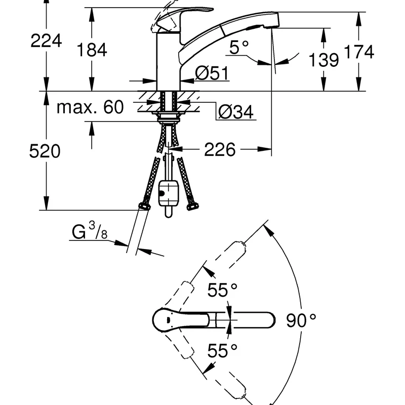 Змішувач для кухні з висувним виливом Grohe Eurosmart (30305000)