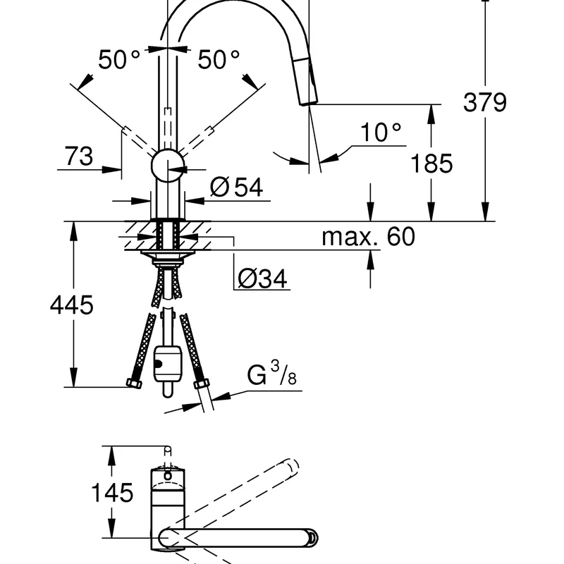 Змішувач для кухні з висувним виливом Grohe Minta (32321002)