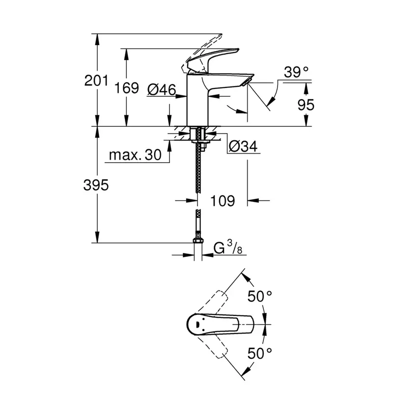 Змішувач для раковини S-розміру Grohe Eurosmart New (32467003)