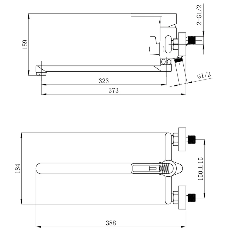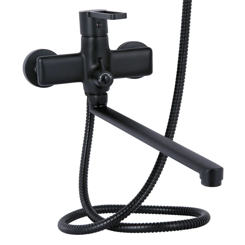 Змішувач для ванни Qtap Taurus з довгим поворотним виливом (з душовим гарнітуром) QTTAU260BLM45664 Black Matt