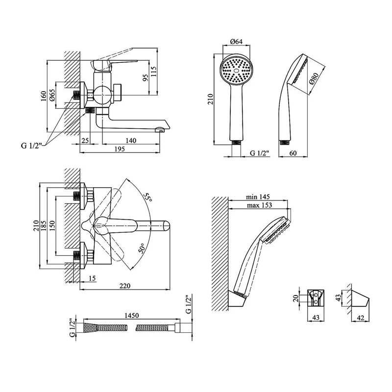 Змішувач для ванни з душем короткий вилив WAL BOU4-A146