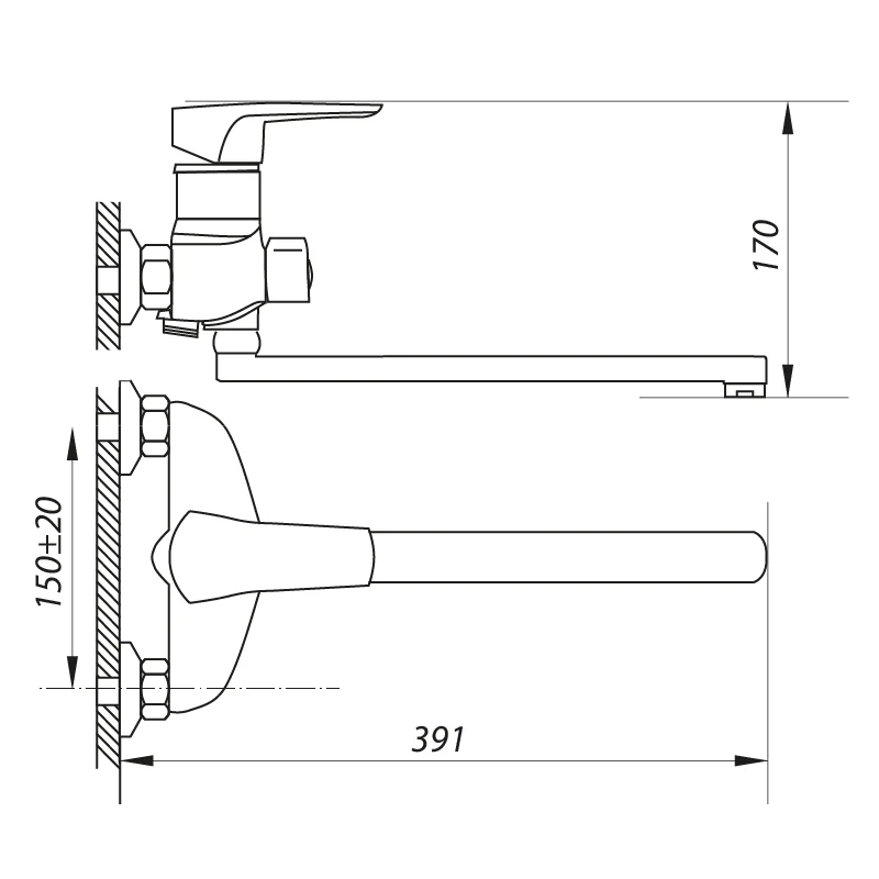 Змішувач для ванни ZERIX NGB 180 (ZX0043)