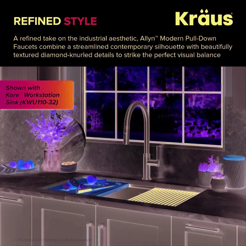 Вишуканий погляд на сучасну індустріальну естетику, сучасні висувні змішувачі Oletto™ поєднують в собі обтічний сучасний силует з деталями з діамантовою накаткою для досягнення ідеального візуального балансу. Висувна розпилювальна лійка з технологією Reach™ забезпечує легку маневреність і розширений діапазон рухів, завдяки чому ви можете згинатися, повертатися і діставати до будь-якої частини кухонної мийки. Двофункціональний розпилювач перемикається з аерованого струменя на потужний розпилювач для всіх кухонних завдань. М'які гумові розпилювачі дозволяють видаляти мінеральні відкладення, забезпечуючи тривалу роботу. Високий дугоподібний вилив забезпечує достатньо місця в раковині для великого посуду та високих глечиків, а також повертається на 360° для повного діапазону рухів. Створена для зручності використання, тонка одноважільна ручка обертається на 90° вперед, забезпечуючи гнучкість встановлення в місцях з обмеженим зазором для зворотного розбризкування води. Надійна конструкція має міцний металевий корпус і високоякісні компоненти, включаючи високоякісний керамічний картридж, противагу, що фіксується, і простий в установці швидкоз'ємний шланг, який допомагає забезпечити тривале використання без витоків. Щоб персоналізувати зовнішній вигляд, цей змішувач доступний у різних довговічних антикорозійних покриттях, включаючи легке для чищення покриття з нержавіючої сталі без плям, яке запобігає утворенню плям від води та відбитків пальців, що полегшує догляд за ним. Готовий до встановлення комплект включає попередньо приєднані водопровідні лінії та кріпильні елементи для легкого монтажу своїми руками.