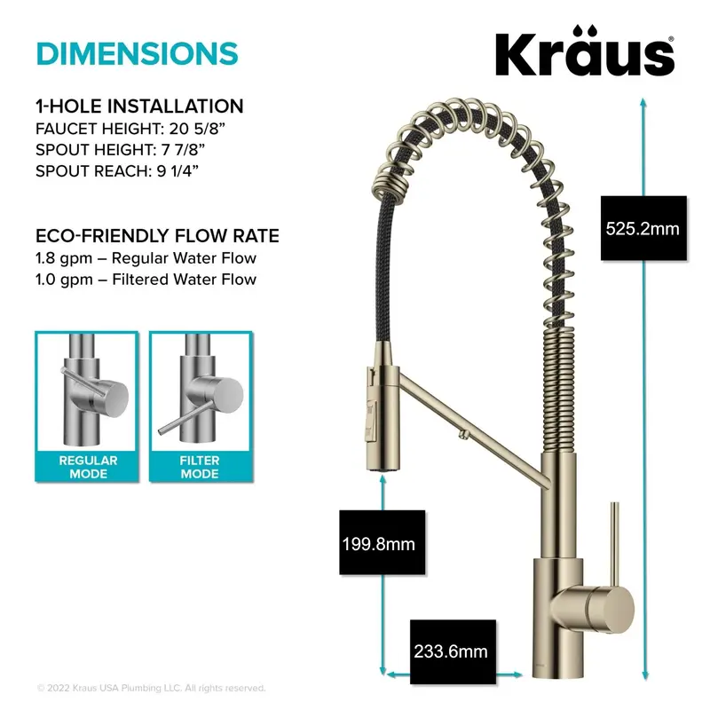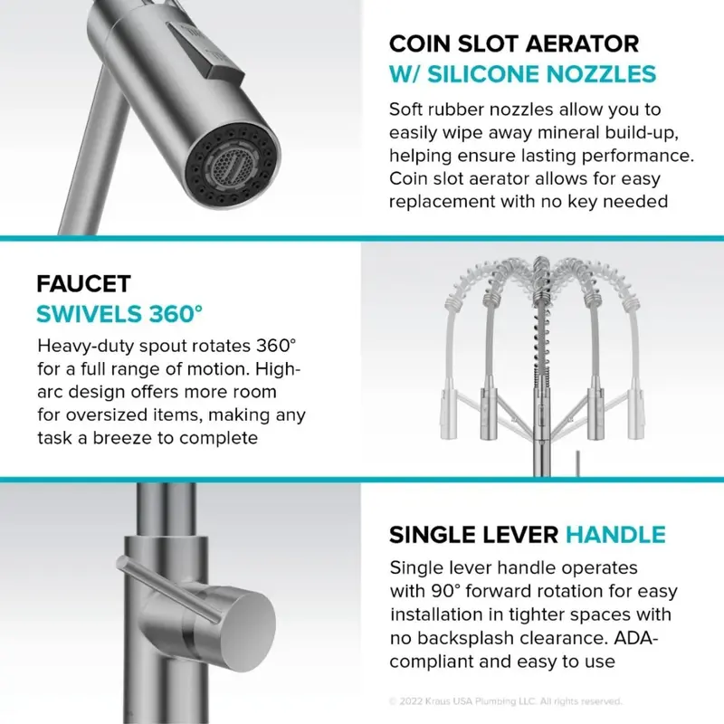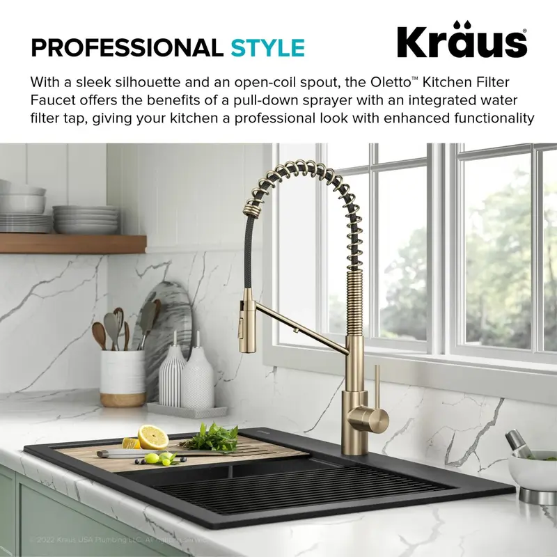 Кухонний змішувач з фільтром для води Oletto™ з елегантним сучасним силуетом і вражаючим відкритим виливом поєднує в собі переваги висувного змішувача комерційного стилю зі зручністю вбудованого крана з фільтром для питної води. Конструкція 2-в-1 усуває необхідність в окремому змішувачі з фільтром, оптимізуючи зовнішній вигляд і функціональність вашої кухні. Цей кухонний змішувач, створений з використанням технології DuoPure ™, оснащений двома незалежними лініями подачі звичайної і фільтрованої води, що запобігає перехресному забрудненню і гарантує, що ви кожен раз отримуєте очищену воду. Універсальний дизайн з'єднується з обраними вами системами фільтрації води під стільницею, як-от зворотний осмос (не входить до комплекту), для легкого доступу до відфільтрованої води для пиття або приготування їжі. Ручка з одним важелем регулює потік водопровідної та фільтрованої води; просто поверніть ручку повністю вперед, щоб активувати функцію фільтра. Цей змішувач має привабливий професійний вигляд завдяки відкритому виливу з великою дугою, який забезпечує достатньо місця в раковині для великого посуду. Висувна розпилювальна головка з технологією Reach™ забезпечує маневреність із розширеним діапазоном рухів, тож ви можете згинати, повертати та діставати все навколо кухонної раковини. Двофункціональна розпилювальна головка перемикається з аерованого струменя на потужний струмінь для змивання стійких залишків. Міцна конструкція і компоненти преміум-класу забезпечують тривале використання без витоків. Включає в себе попередньо прикріплені водопровідні лінії, палубну плиту і все монтажне обладнання для легкого встановлення. Висувна розпилювальна головка з технологією Reach ™ забезпечує маневреність з розширеним діапазоном рухів, тому ви можете згинати, повертати і діставати все навколо кухонної раковини. Двофункціональна розпилювальна головка перемикається з аерованого струменя на потужний струмінь для змивання стійких залишків. Міцна конструкція і компоненти преміум-класу забезпечують тривале використання без витоків. Включає в себе попередньо прикріплені водопровідні лінії, палубну плиту і все монтажне обладнання для легкого встановлення. Висувна розпилювальна головка з технологією Reach ™ забезпечує маневреність з розширеним діапазоном рухів, тому ви можете згинати, повертати і діставати все навколо кухонної раковини. Двофункціональна розпилювальна головка перемикається з аерованого струменя на потужний струмінь для змивання стійких залишків. Міцна конструкція і компоненти преміум-класу забезпечують тривале використання без витоків. Включає в себе попередньо прикріплені водопровідні лінії, палубну плиту і все монтажне обладнання для легкого встановлення.