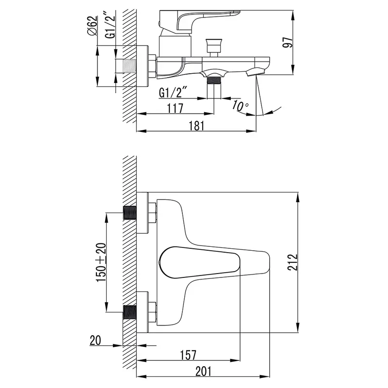Змішувач MAGGIORE Ø40 для ванни литий CORSO BE-1C122C (9608200)