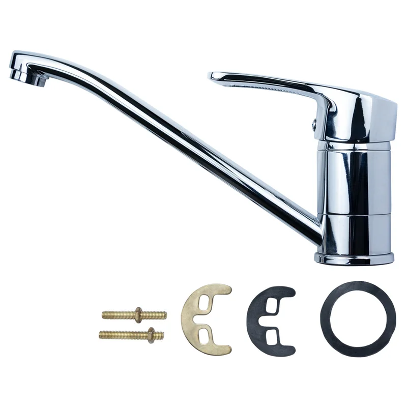 Змішувач для кухні MD-2B244C - це модель з прямим виливом довжиною 250 мм і одноважільним управлінням. Установка здійснюється в спеціальний отвір в мийці з кріпленням на шпильки. Такий тип крана підходить для всіх розмірів і форм мийок, дозволяє зручно помити як столову, так і варильну посуд, а також продукти харчування.