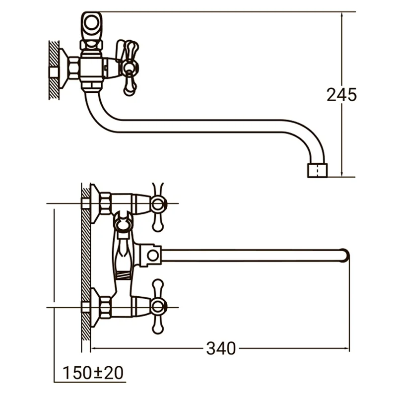 Змішувач PM 1/2" для ванни гусак вигнутий дивертор вбудований кульовий AQUATICA PM-5C457C (9780220)