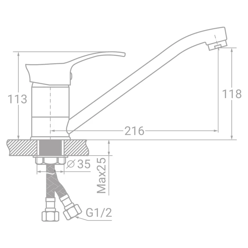 Змішувач s07 Ø40 для кухні гусак прямий 250мм на гайці TAU SE-1B245C (9807110)