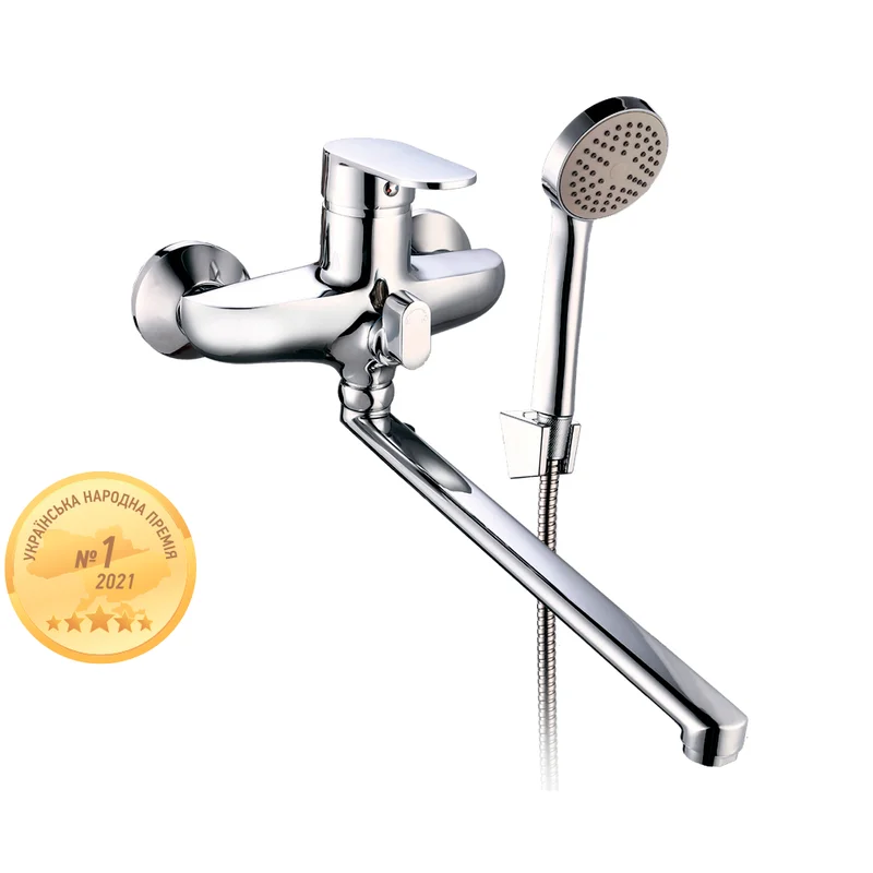 Змішувач s33 Ø40 для ванни гусак прямий 350мм дивертор вбудований картріджний AQUATICA (9733220)