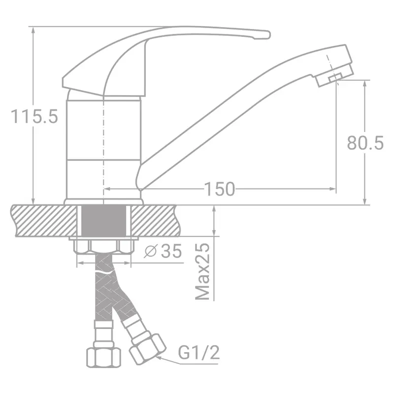 Змішувач s40 Ø40 для кухні гусак прямий 150мм на гайці TAU SL-1B143C (9840100)