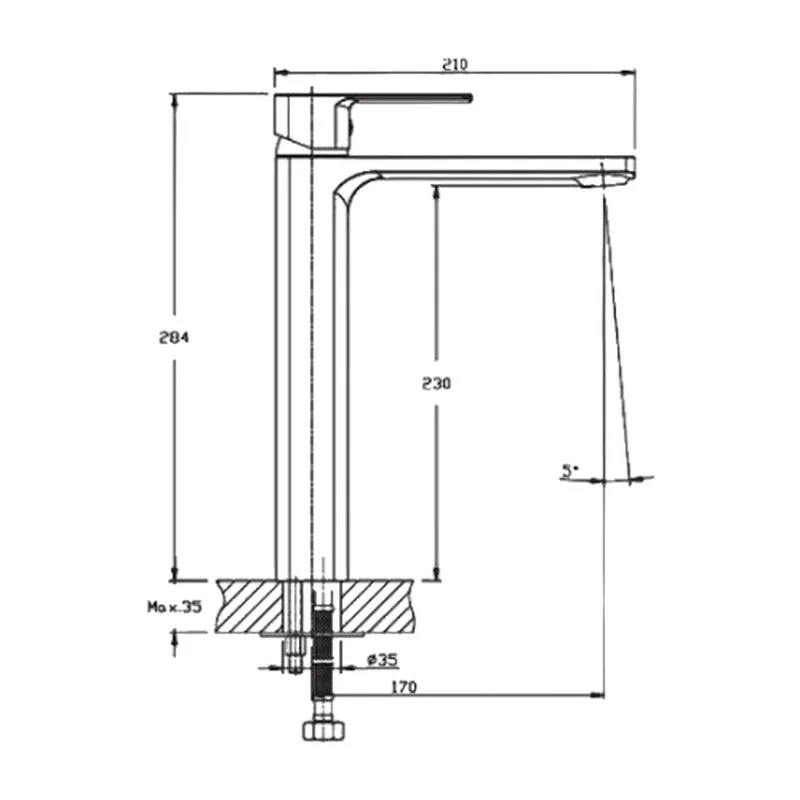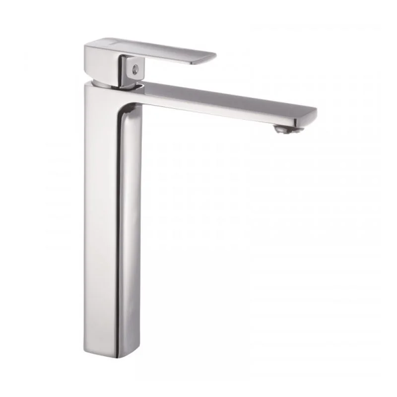Високий одноважільний змішувач для раковини з довгим виливом Haiba Kubus 001 призначений для встановлення в парі з накладними раковинами. Особливість пристрою в тому, що його монтаж здійснюється не на умивальник, а на стільницю, в якій попередньо проробляється відповідний отвір.