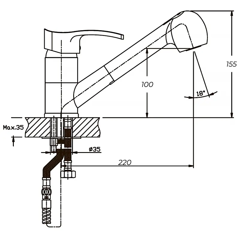 Змішувач для кухні Haiba FOCUS 014 з висувною лійкою (HB0129)