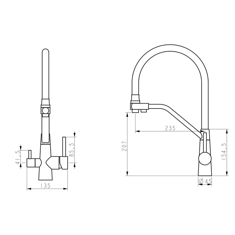 Змішувач для кухні Lidz Aria 020F3 з гнучким виливом з підключенням для питної води (k35) LDARI020F3BLA39212 Black Matt