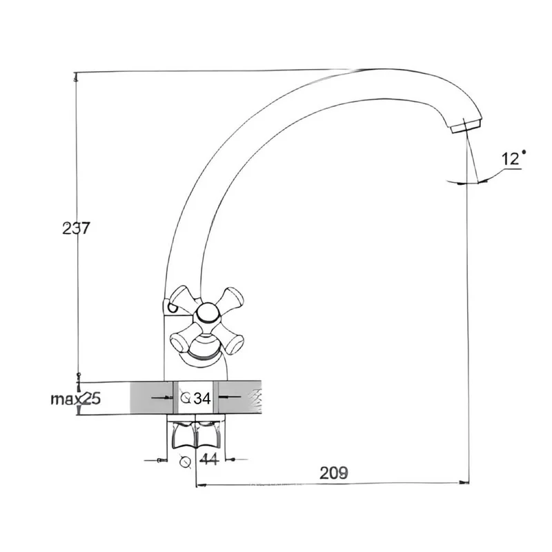 Технологія виробництва лиття під тиском, оснащений аератором, що пом'якшує воду і економить витрату води. Управління здійснюється поворотами двох вентилів. Сучасний дизайн з хромованим покриттям відмінно поєднуватиметься з дизайном будь-якої кухні.