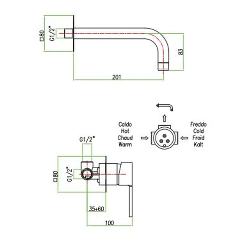 Змішувач для умивальника Santan KALOS 76CR7427 прихований монтаж, настінний.