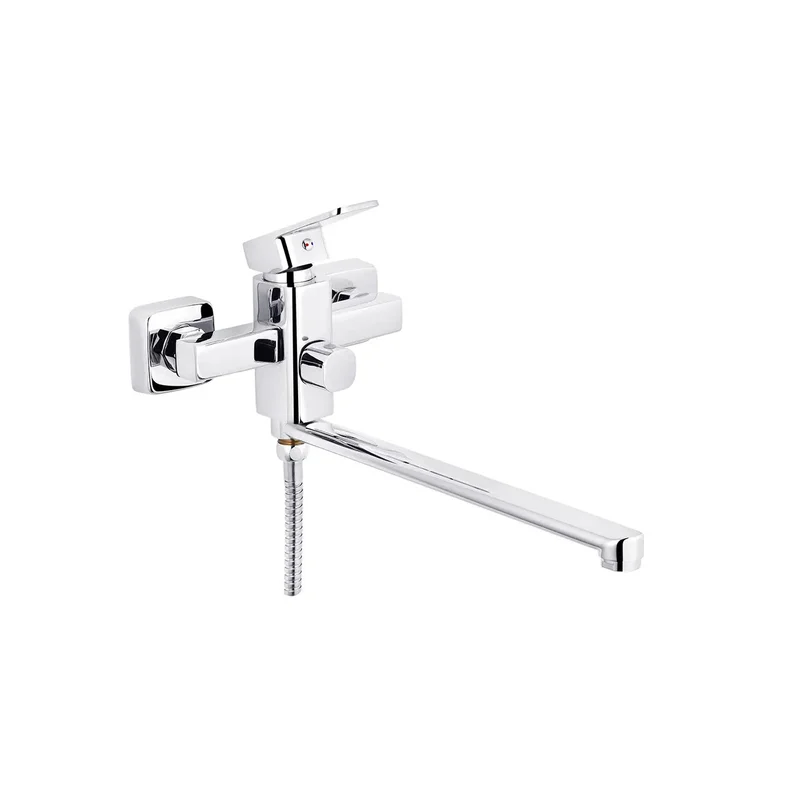 Змішувач для ванни довгий вилив WAL KUB2-A123-це стильне і практичне рішення для вашої ванни, що забезпечує високий рівень зручності і функціональності. Змішувач призначений для настінного монтажу, забезпечуючи міцне з'єднання з поверхнею.Основні характеристики змішувача WAL KUB2-A123:- Хромоване покриття надає йому елегантний зовнішній вигляд, а також забезпечує захист від корозії і пошкоджень.- Поворотний вилив на 360 градусів забезпечує максимальну функціональність, а традиційна форма виливу надає класичний вид вашої ванні.- Аератор забезпечує рівномірний розподіл води і економію її витрати до 10 літрів в хвилину.- Додаткові функції включають в себе тримач для душової лійки і душовою шланг, що робить використання змішувача ще більш зручним і різноманітним.- Керамічний картридж і запірний клапан забезпечують надійність і довгий термін служби змішувача.Змішувач WAL KUB2-A123-це практичний і стильний вибір для вашої ванни, де функціональність і естетика поєднуються в ідеальному балансі. Гарантований термін служби - 36 місяців, що підкреслює високу якість і надійність цього продукту.
