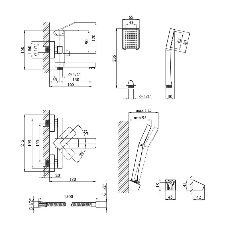 Змішувач для ванни квадратний короткий вилив WAL KUB4-A123