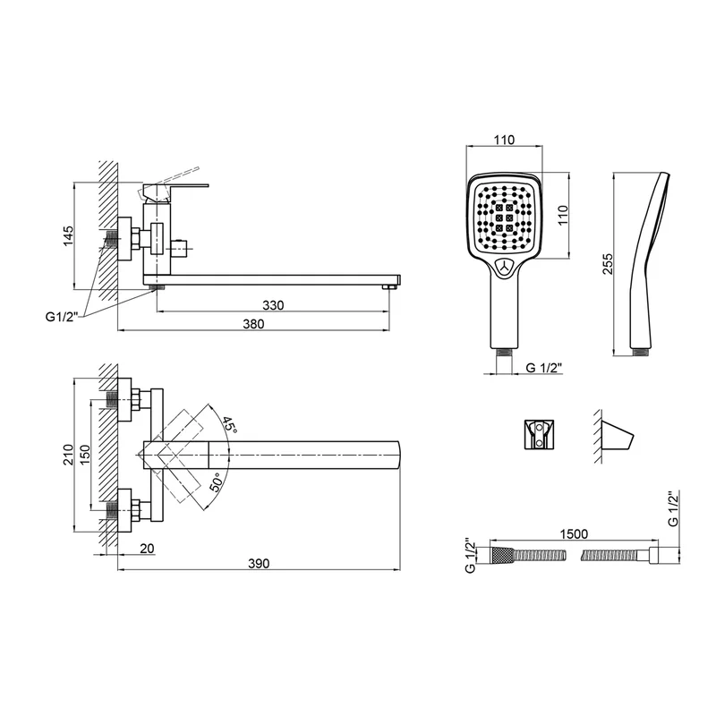 Змішувач для ванної кімнати Lidz Kubis 005 LDKUB005BLA43378 виконаний у кубічному стилі з нержавіючої сталі, що гарантує тривалий термін експлуатації. Змішувач монтується на стіну над ванною за допомогою кріпильних елементів, що входять в комплект. Квадратні розетки приховують похибки установки на обробці. Утримувач лійки кріпиться також на стіну. Таким чином, ваші руки будуть вільні під час прийняття душу.