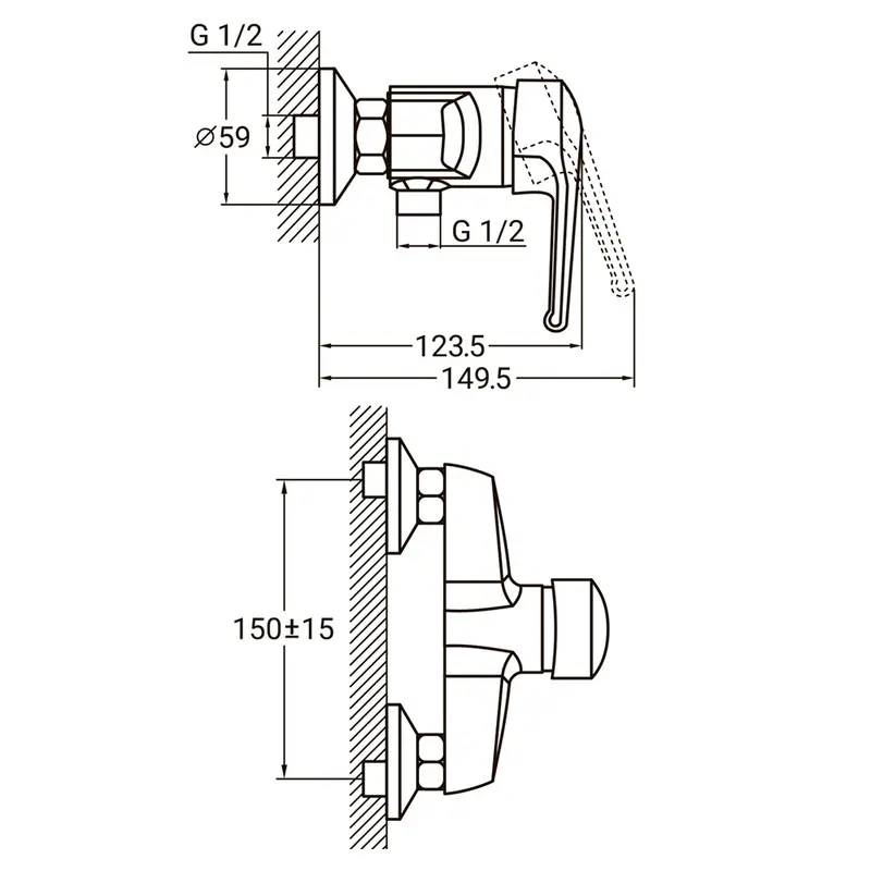 Змішувач укомплектований шлангом з нержавіючої сталі (довжиною 1500 мм), лійкою і тримачем з ABS-пластика, а також кріпильними елементами. Спосіб монтажу - настінний.