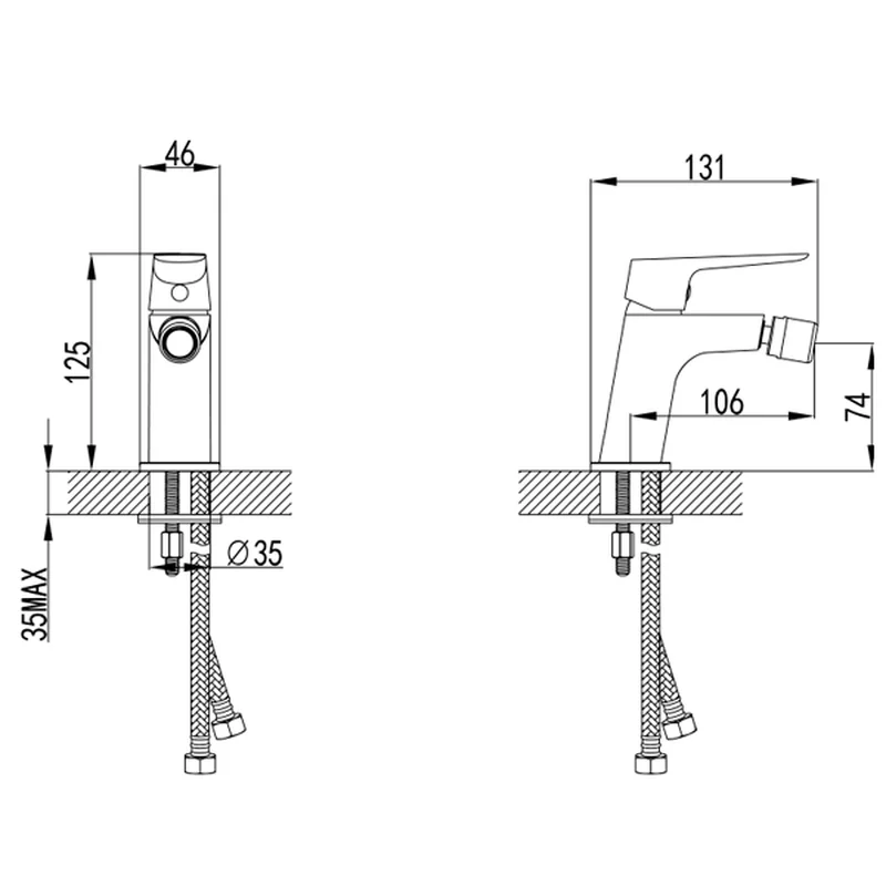 Змішувач LUGANO Ø26 для біде на шпильці CORSO 9620500 (CH-1F147C)