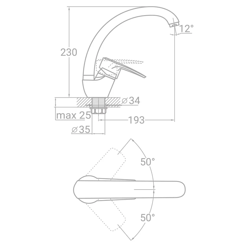 Змішувач s04 Ø40 для кухні гусак вухо на гайці TAU SD-4B143C (9804150)