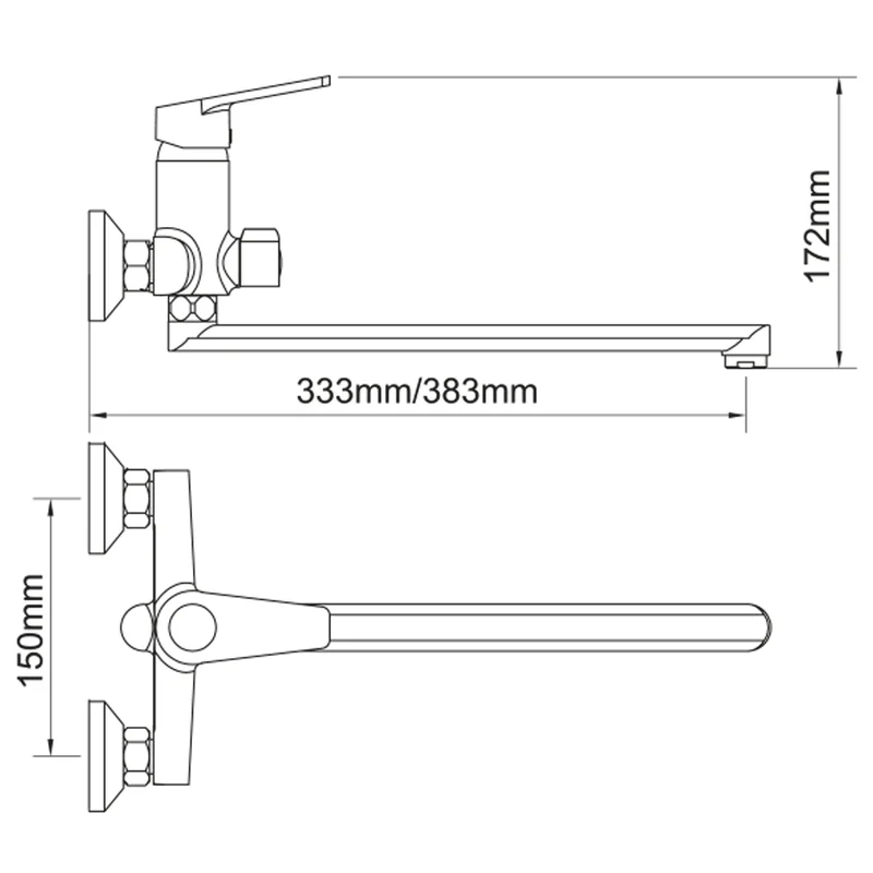 Змішувач s37 Ø35 для ванни излив прямий 350мм дивертор вбудований картриджний (W) AQUATICA (9737222)