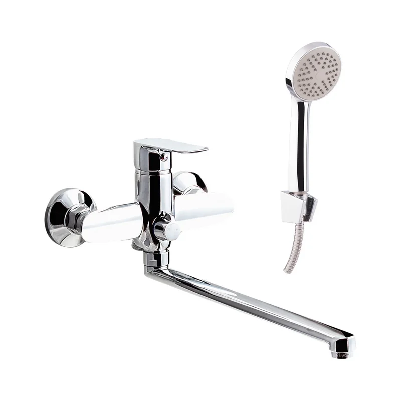 Змішувач для ванни з довгим виливом WAL RIF2-A139-ідеальне поєднання стилю, функціональності і надійності для вашої ванної кімнати. Цей змішувач забезпечує високий рівень комфорту, надаючи вашому ванному простору елегантний вигляд і сучасний шарм. Особливості змішувача WAL RIF2-A139:- Гарантійний термін: 36 місяців.- Вага: 0,96 кг.- Покриття: Хром.- Колір: Хром.- Висота: 160 мм.- Ширина: 200 мм.- Глибина: 380 мм.- Аератор: Так.- Максимальна витрата води: 10 літрів в хвилину.- Монтаж: Настінний.- Поворотний вилив: так.- Кут повороту виливу: 360 градусів.- Форма виливу: традиційна.- Довжина виливу: 330 мм.- Термостат: Ні.- Вбудований фільтр: ні.- Тримач для душової лійки: так.- Донний клапан: ні.- Душовий шланг: так.- Кількість монтажних отворів: 2.- Лійка: Так.- Матеріал корпусу змішувача (крана): алюмінієві сплави.- Призначення змішувача: для ванни.- Перемикач на фільтр: немає.- Приєднувальний розмір: 3/4.- Спосіб монтажу: горизонтальний.- Тип змішувача (крана): одноважільний.- Тип підводки: жорстка.- Тип приєднання: Гайка.- Довжина шланга: 1500 мм.- Запірний клапан: керамічний картридж.- Діаметр керамічного картриджа: 35 мм.- Тип перемикання вилив-душ: Букса.Змішувач WAL RIF2-A139 приносить у вашу ванну кімнату стиль і зручність, а гарантований термін служби в 36 місяців підкреслює його високу якість і довговічність.