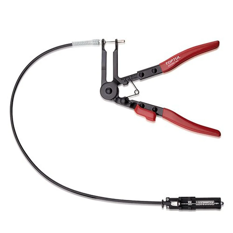 Знімач хомутів TOPTUL JDAM0163 гнучкий, довжина 630мм.Знімач хомутів гнучкий для заміни паливних, масляних і водяних шлангів. Знімач з гнучким кабелем довжиною 630мм підходить для роботи в прихованих або важкодоступних місцях.