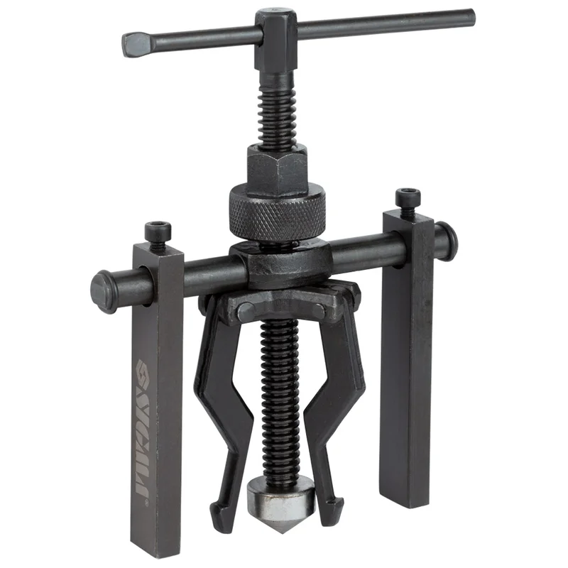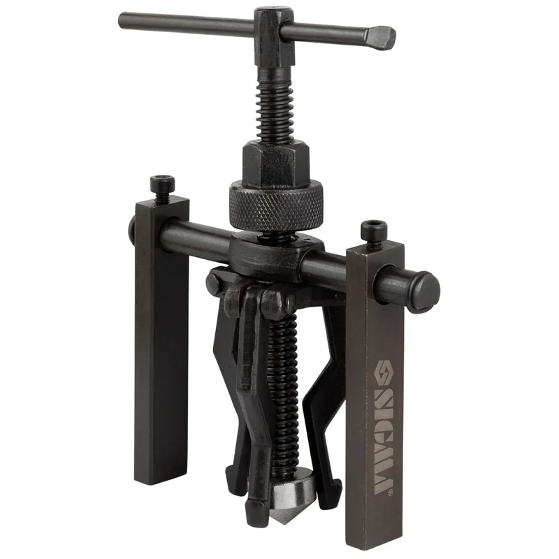 Знімач підшипників внутрішній Ø20-50мм SIGMA (6222131) призначений для демонтажу підшипників кочення з внутрішнім діаметром від 20 до 50мм. За допомогою лапок захвачується внутрішня обойма, а в корпусні стінки деталі впираються дві штанги, які можна переміщати по траверсі та стопорить гвинтами. Даний знімач має опори під силовий гвинт. Під час закручування шпинделя, три лапки, вставлені всередину кільця, розсуваються, захвачують та зривають підшипників з посадкового місця. Даний знімач переважно використовується на спеціалізованих СТО та автомайстернях.