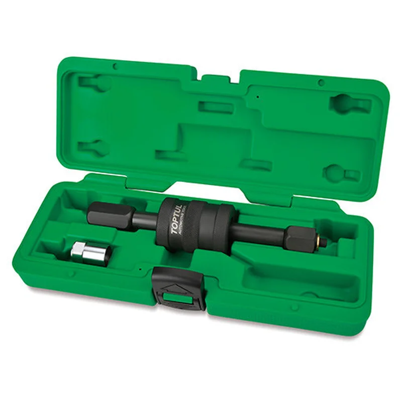 Знімач дизельних форсунок TOPTUL JGAI0101.Призначений для швидкого і легкого зняття стійких дизельних форсунок;Підходить для дизельних форсунок типу Bosch & Lucas;Механізм ковзання в комплекті з перехідниками M8, M12 / M14;Включає адаптер M17 для інжекторів GM Vauxhall / Opel (двигуни серії X20DTH / Y20DTH).