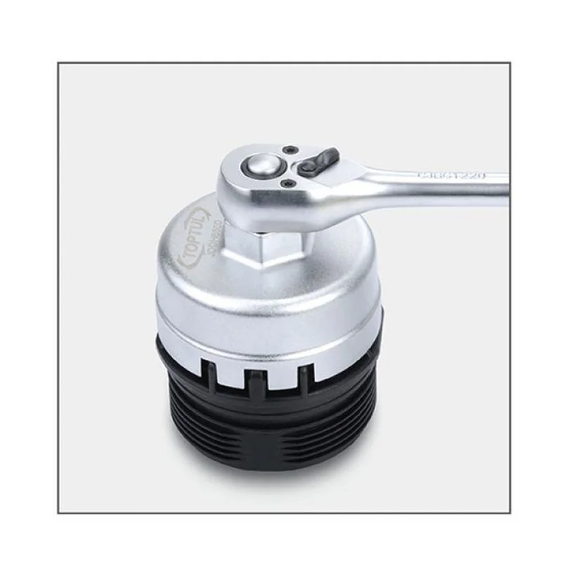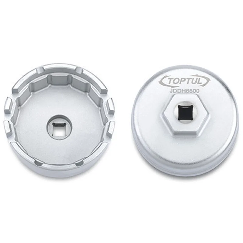 Знімач масляного фільтра "чашка" 64,5/14 мм (4-х цил. TOYOTA) TOPTUL JDDH6500 Цілісна лита конструкція виконана з надійного алюмінієвого сплаву.Підходить для 4-циліндрових бензинових або дизельних двигунів від 1,8 л до 2,0 л (TOYOTA Allion, Auris, Corolla Axio, Isis, Ist, Corolla Rumion, Corolla Fielder, Noah, Premio, Prius, Voxy, Wish і т. д.)Призначений для швидкої установки і демонтажу кришки масляного фільтра у вставці масляного фільтра.Кілька точок контакту допомагають задіяти кришку корпусу для надійного зчеплення з масляним фільтром.Використовується з приєднувальним квадратом 3/8" або 27-міліметровим ключем.