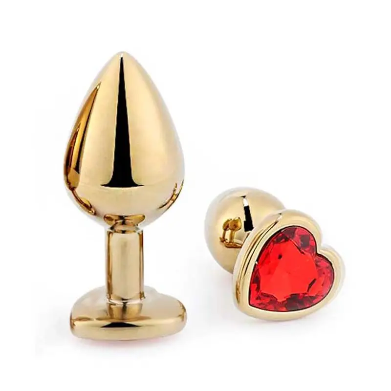 Золота анальна пробка з кристалом серце - 7*2,8 см (S) — Анальні іграшки