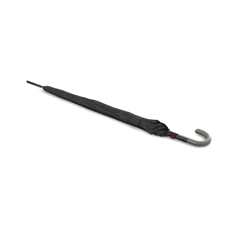 Складна парасолька Kn9637031000-напівавтомат. Він зручний при використанні. Має міцну каркасну споруду. Купол парасольки містить 8 спиць. Парасолька відкривається автоматично всього лише за кілька секунд. Для цього достатньо натиснути кнопку. А ось складається парасолька вручну. Ручка парасольки-зручна для використання. Випущена в сіро-чорному кольорі з впізнаваним символом компанії Knirps-червона точка. Купол парасольки виконаний в чорному кольорі в клітинку.