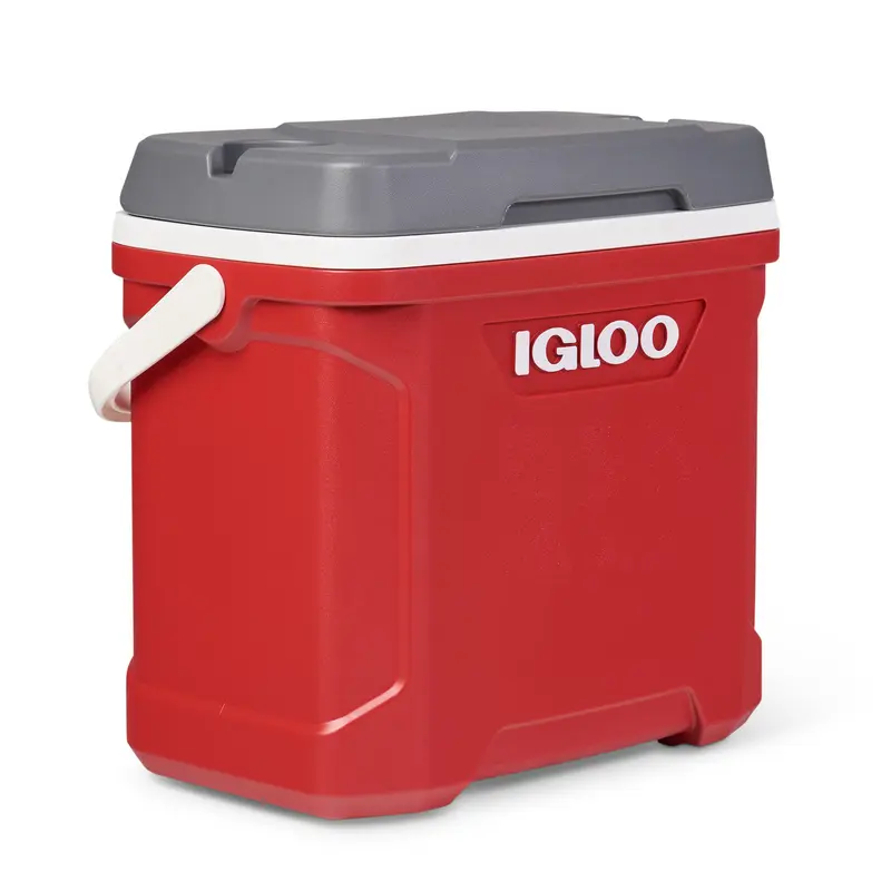 Зручний та компактний ізотермічний контейнер IGLOO® Latitude 30 у привабливому сіро-червоному кольорі виконаний з типів пластику стійких до пошкоджень і підвищеного навантаження.