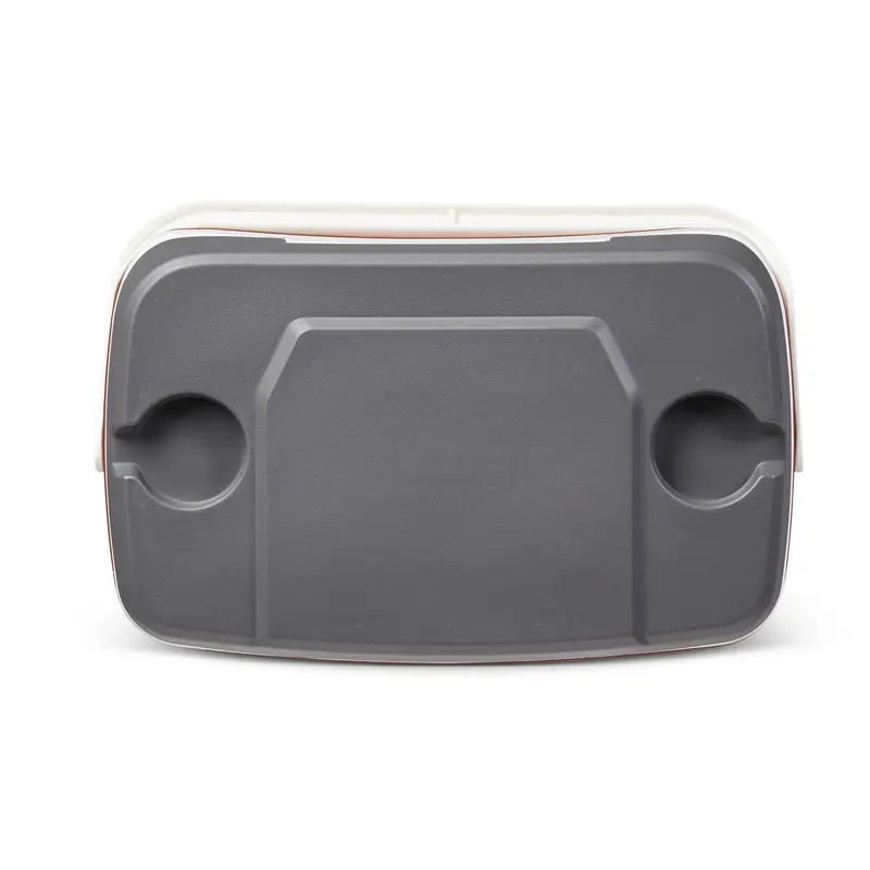 Передбачена конструкцією велика вертикальна ручка зручна при транспортуванні. Два підстаканники на зовнішньому боці кришки дозволяють використовувати її, як міністолик.