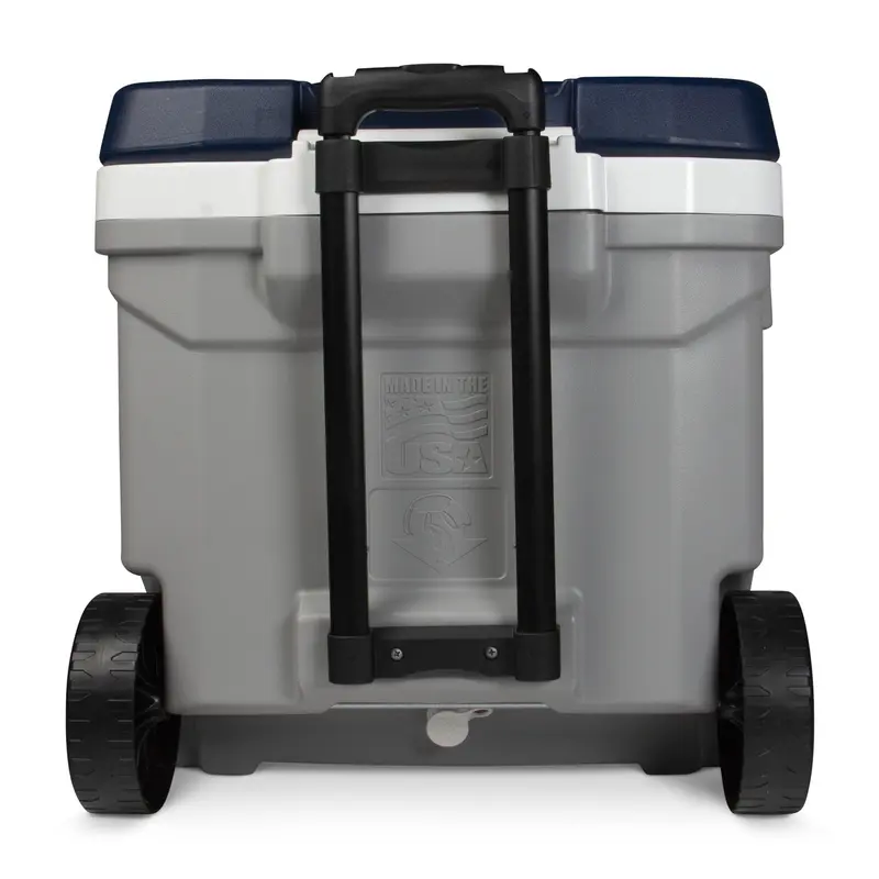 Великий та функціональний ізотермічний контейнер на колесах IGLOO® MAXCOLD LATITUDE ROLLER, 56 л чудово підходить, якщо ви прямуєте до пляжу, лісу чи кемпінгу. Його міцні колеса забезпечують легке переміщення на більшості поверхонь, а фіксована телескопічна ручка дозволяє штовхати та везти бокс без особливих зусиль.