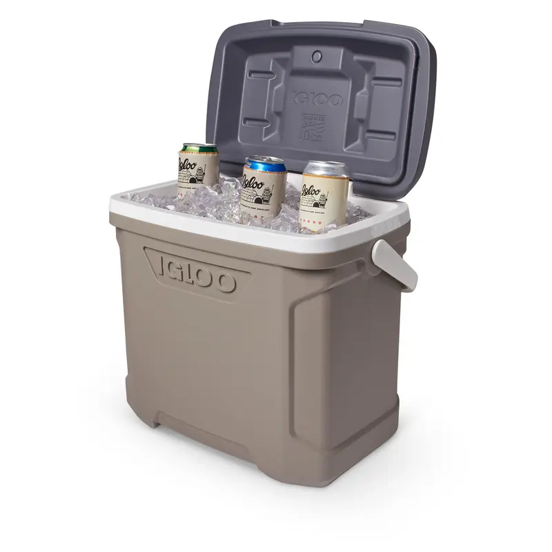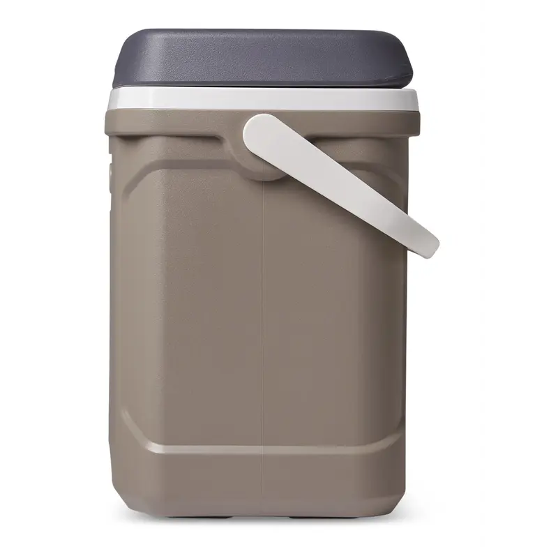Зручний та компактний ізотермічний контейнер IGLOO® Sportsman 30 у стильному сіро-бежевому кольорі виконаний з типів пластику стійких до пошкоджень і підвищеного навантаження.