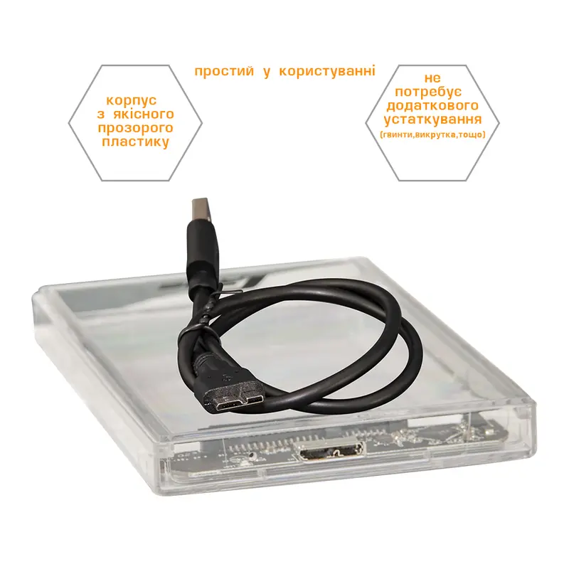 Зовнішня кишеня Frime SATA HDD/SSD 2.5", USB 3.0, Plastic, Clear (FHE80.25U30)