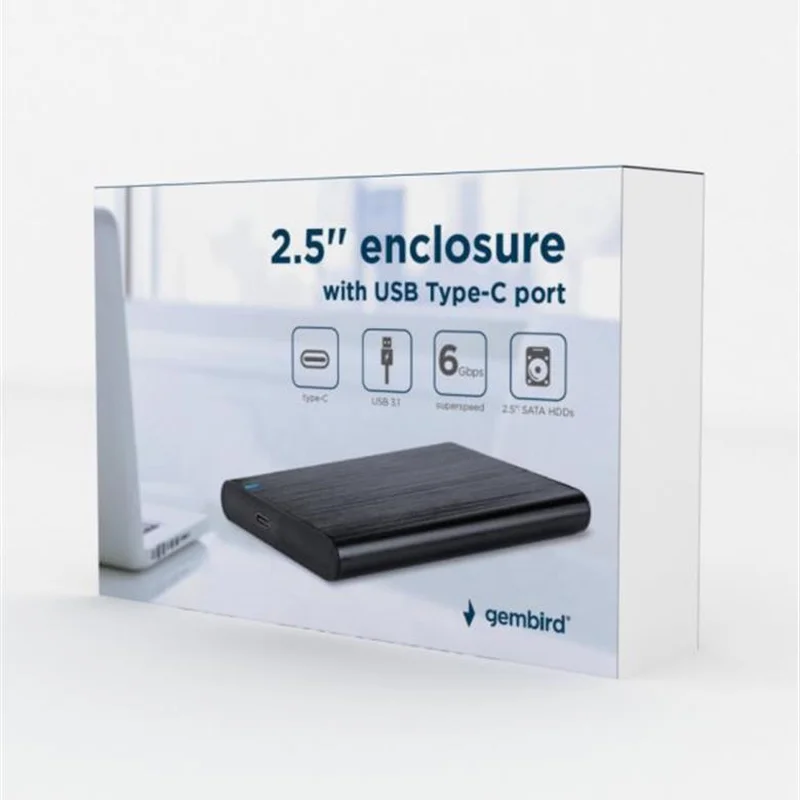 Доступ до диска через інтерфейс SuperSpeed USB 3.1 через USB Type-C порт. Зворотна сумісність з USB 2.0 інтерфейсом. Підтримка 2.5-дюймових жорстких або флеш дисків SATA до 9.5 мм завтовшки (до 4 Терабайт ємності). Міцний корпус зі шліфованого алюмінію зі світлодіодним індикатором. Легка збірка без шурупів. Plug & Play.