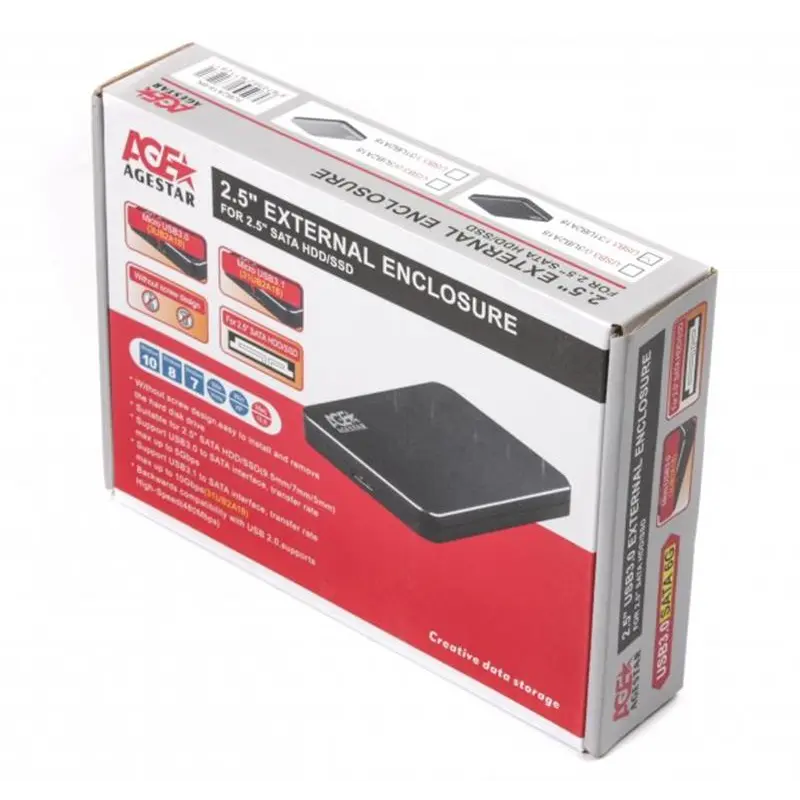 Зовнішня кишеня AgeStar для підключення SATA HDD/SDD 2.5", USB3.1, алюміній, Black (31UB2A18)