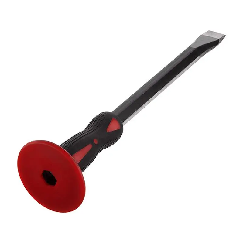 Інструмент виготовлений з високоякісної інструментальної сталі, робоче лезо додатково загартоване для забезпечення більшої міцності та довговічності. Ручка ергономічної форми, виготовлена із сучасного матеріалу – скловолокна. Міцний та легкий, він забезпечує максимальний комфорт під час інтенсивних робіт. Гумове покриття дозволяє надійно утримувати інструмент, що сприяє точній роботі. Спеціальний майданчик на торці збільшує ударну площу та захищає руки від випадкового удару молотком.