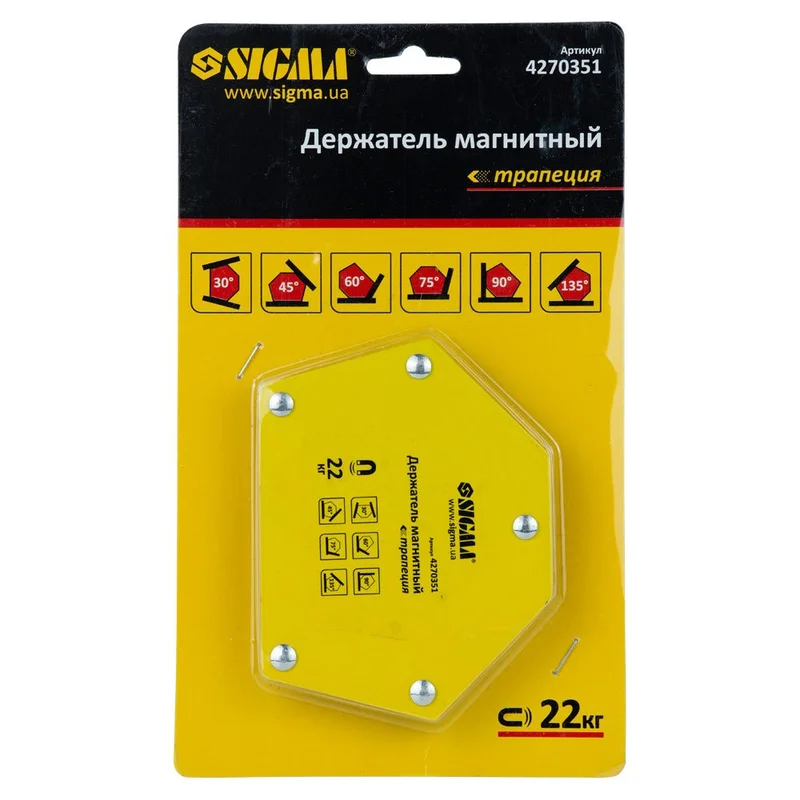 Зварювальний магніт трапеція 22кг 90×54×54×43мм (30,45,60,75,90,135°) Sigma (4270351)