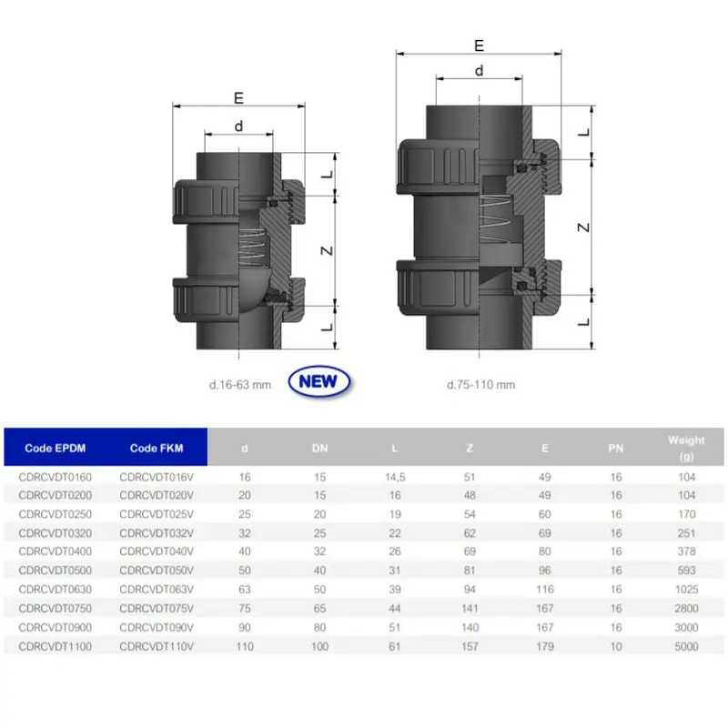 Пружинний зворотний клапан ПВХ Effast CDRCVD з непластифікованого полівінілхлориду PVC-U. Виробництво Італія. Ціна вказана за одну одиницю.