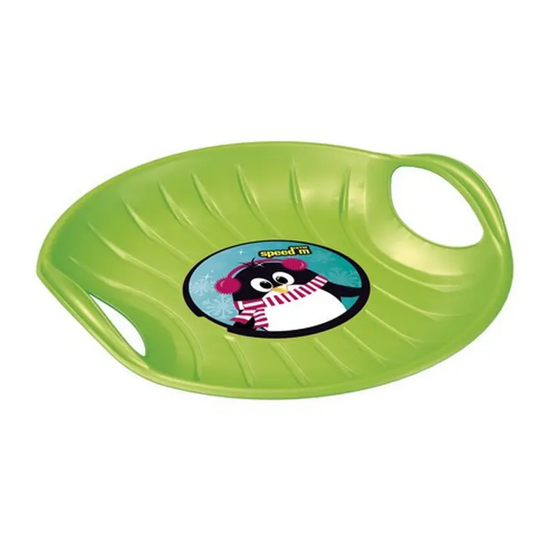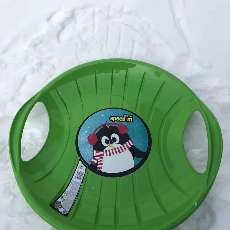 Дитяча ледянка з невеликими бортами, що перешкоджає випаданню або ковзанню дитини за санки. Є дві бічні ручки-виїмки. Ледянка призначена для крижаних гірок.