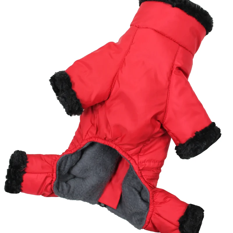 тканина водовідштовхувальна плащівка; наповнювач синтепон; підкладка фліс; обробка рукавів, штанів, горловини з плюшевого хутра; застібається змійкою на спині, змійка люкс прогумована, що не промокає; регулятор обхвату грудей на фіксаторах модель унісекс.