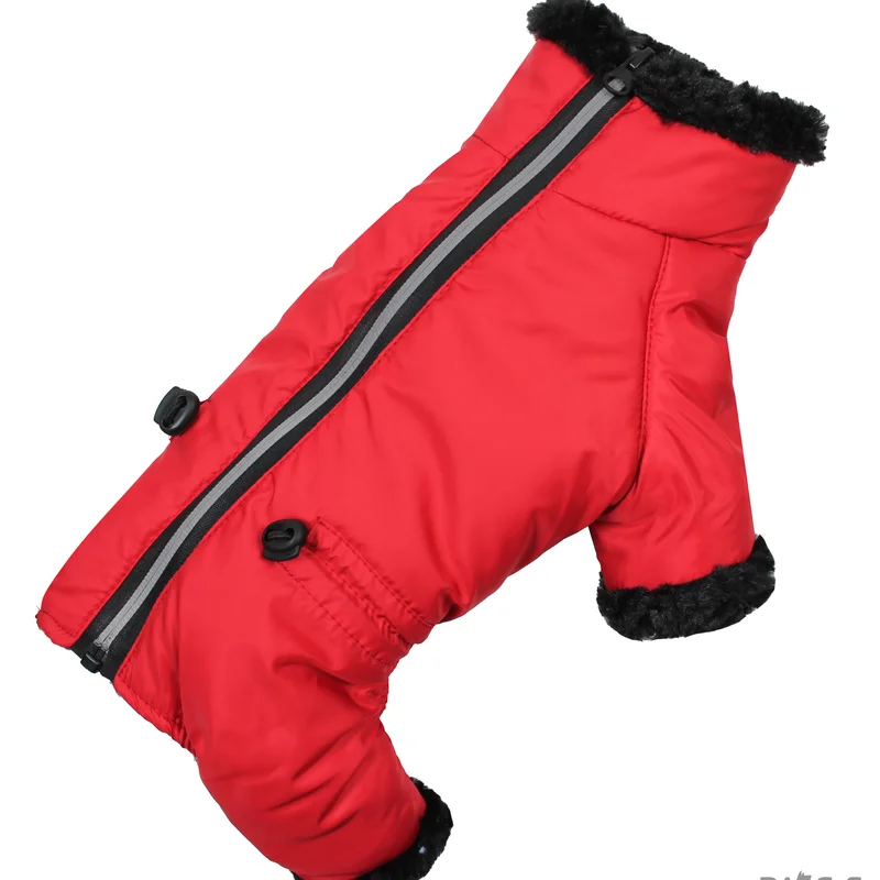 тканина водовідштовхувальна плащівка; наповнювач синтепон; підкладка фліс; обробка рукавів, штанів, горловини з плюшевого хутра; застібається змійкою на спині, змійка люкс прогумована, що не промокає; регулятор обхвату грудей на фіксаторах модель унісекс.
